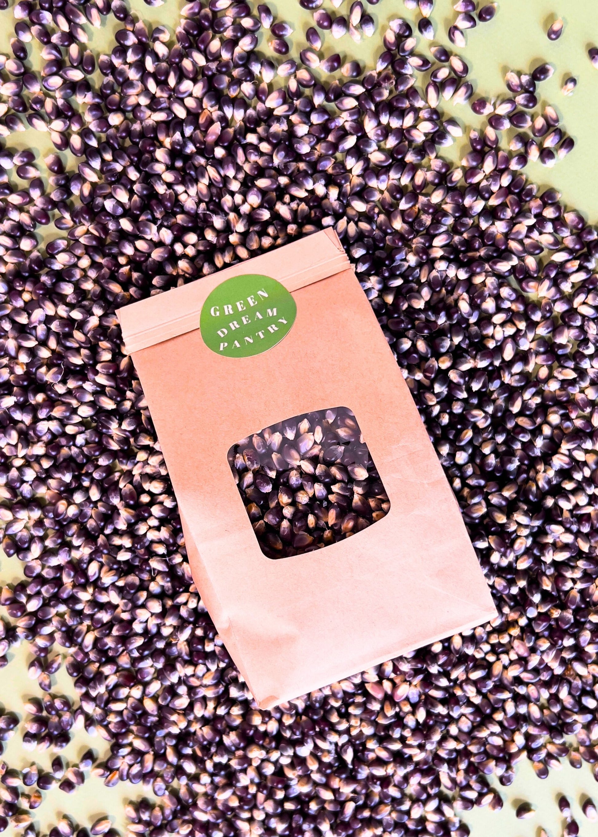 Shaman's Blue Popcorn is a rare, stunning variety of popcorn known for its deep blue kernels. When popped, it reveals fluffy, snow white popcorn with just a faint hint of blue and a delicately sweet flavor. Slightly nutty and ultra crunchy, Shaman’s Blue is a non-GMO heirloom variety of popping corn grown completely without chemicals, which is hard to come by these days, even on small farms.